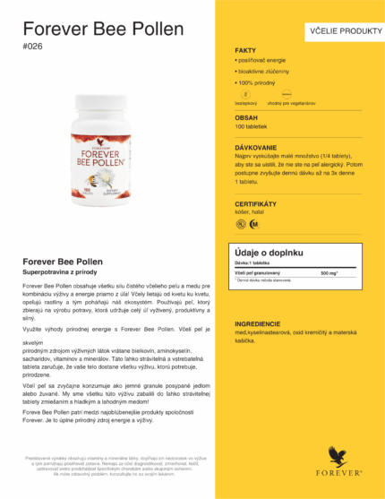 Pôvodná cena bola: 27,50 €.24,75 €Aktuálna cena je: 24,75 €.Forever Bee Pollen 100ks