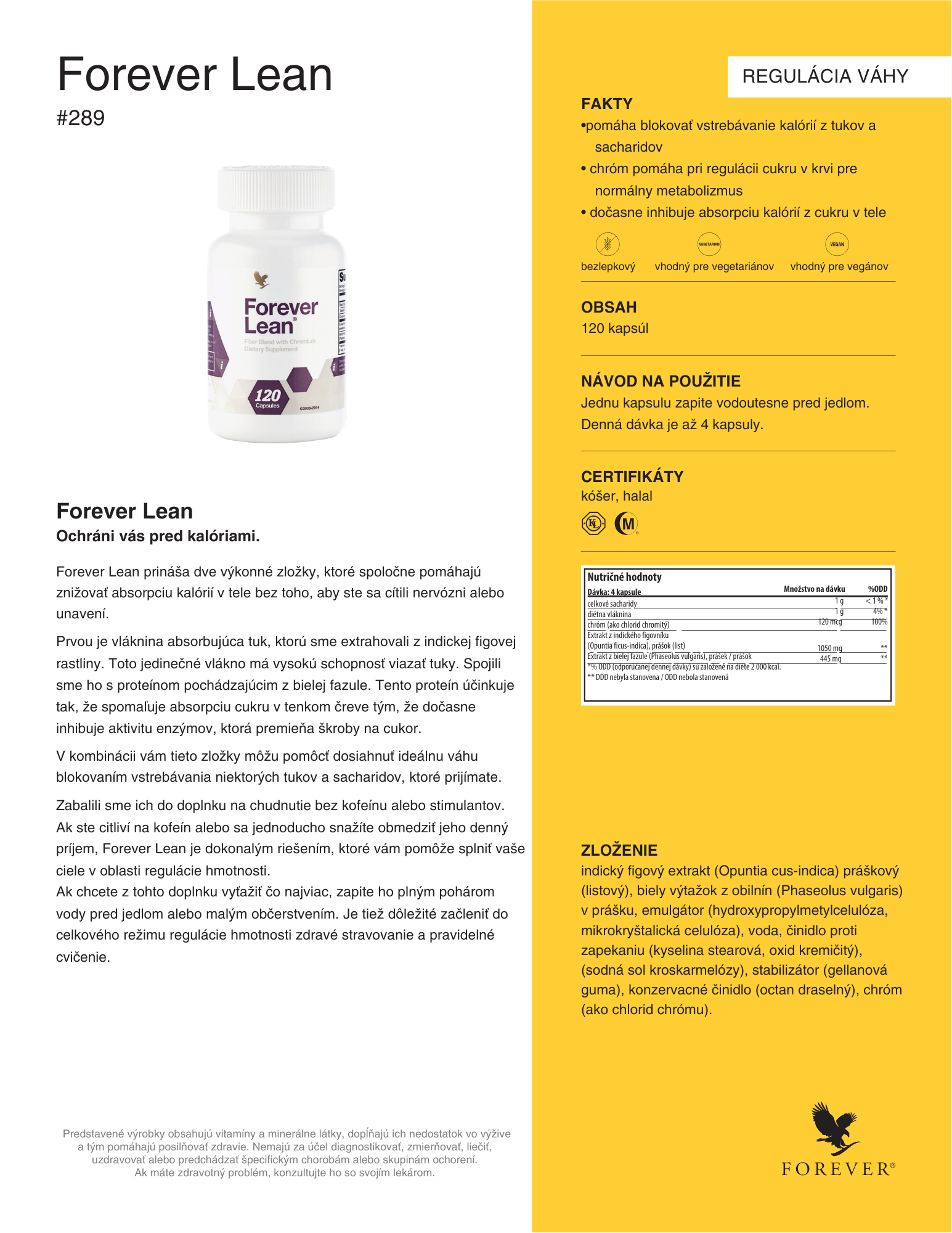 Zabalili sme ich do doplnku na chudnutie bez kofeínu alebo stimulantov. Ak ste citliví na kofeín alebo sa jednoducho snažíte obmedziť jeho denný príjem, Forever Lean je dokonalým riešením, ktoré vám pomôže splniť vaše ciele v oblasti regulácie hmotnosti.
